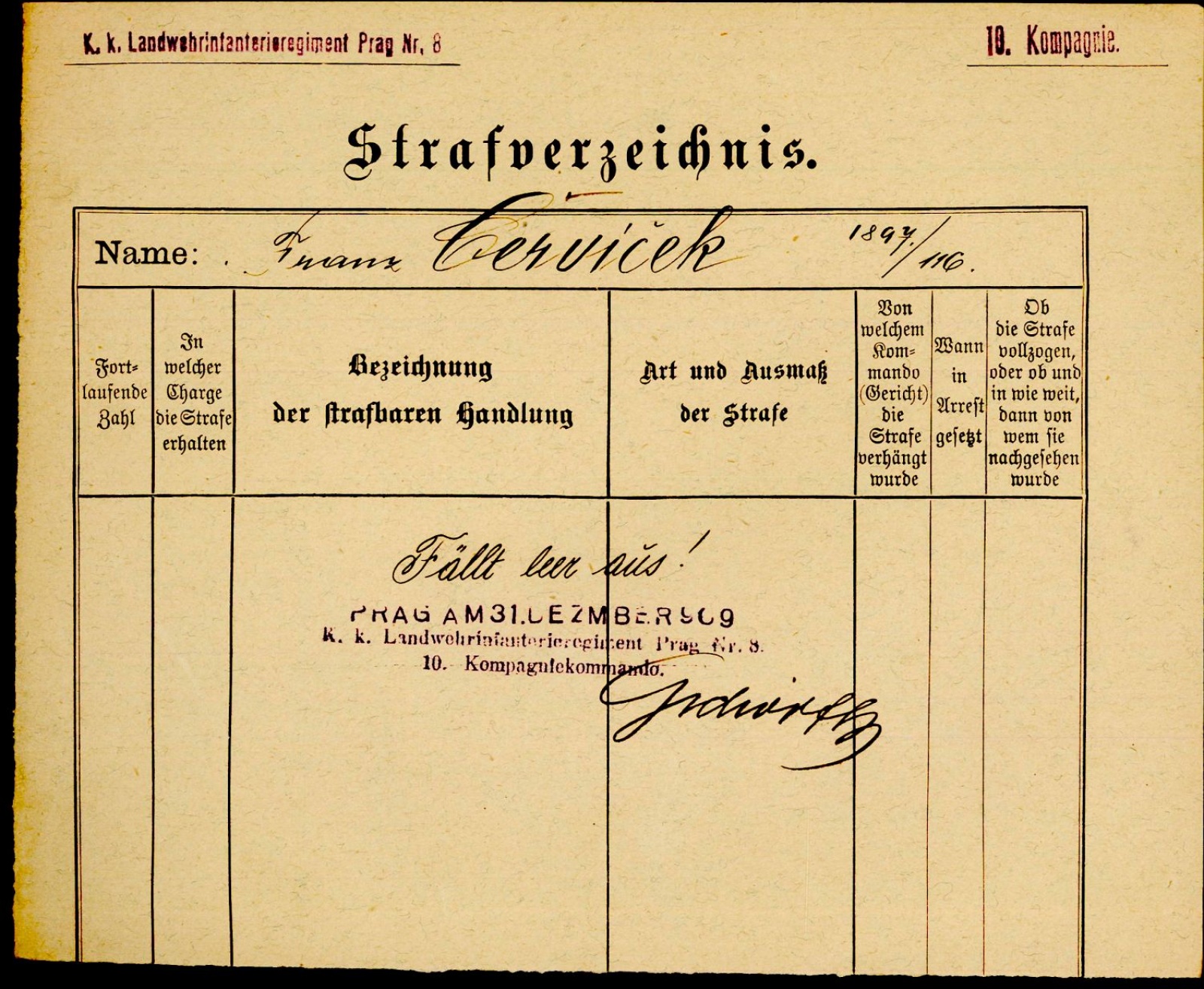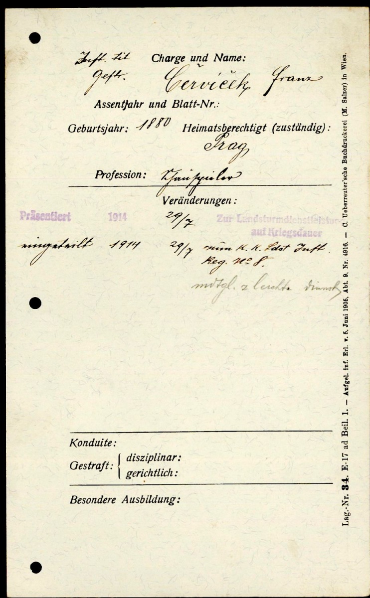 RANGLISTEN K. K. LANDWEHR 1916 (jmenný seznam důstojníků LIR 8 Prag)