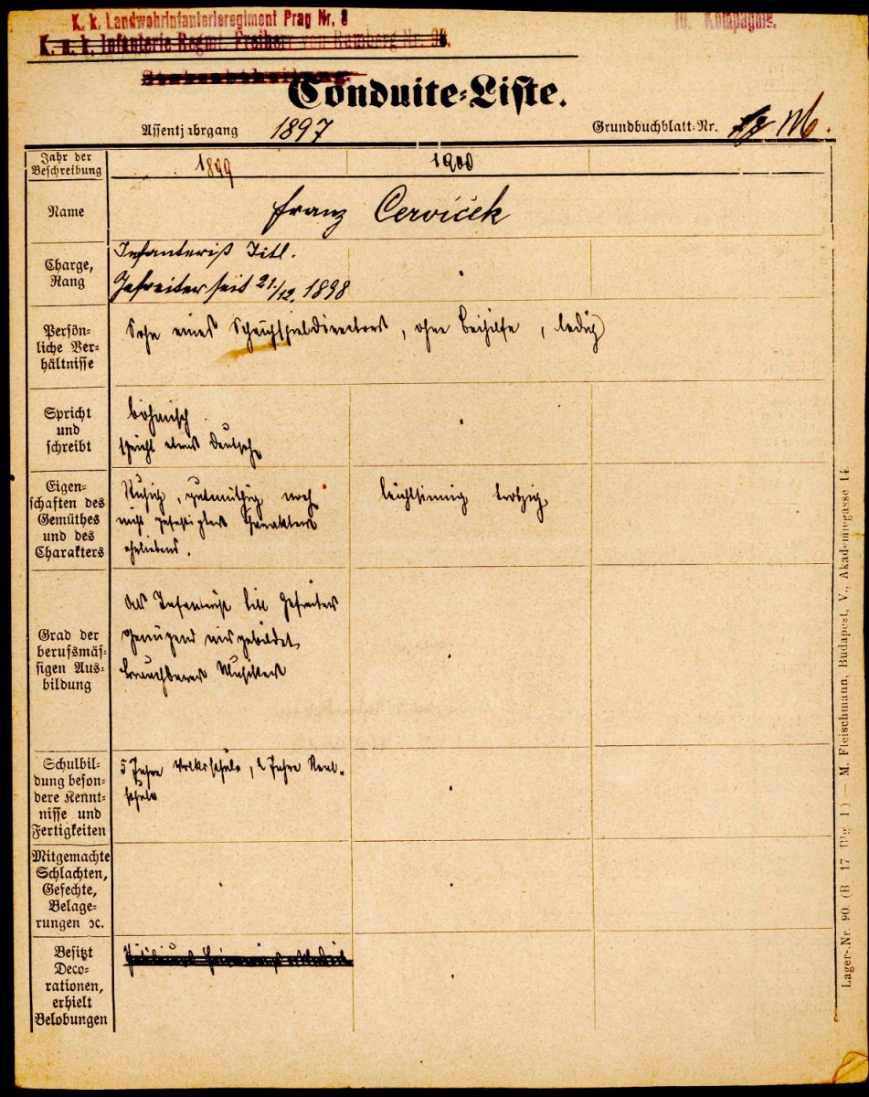 Schematismus der K.K Landwehr (LIR Nr.8 Prag) 1877 - 1913